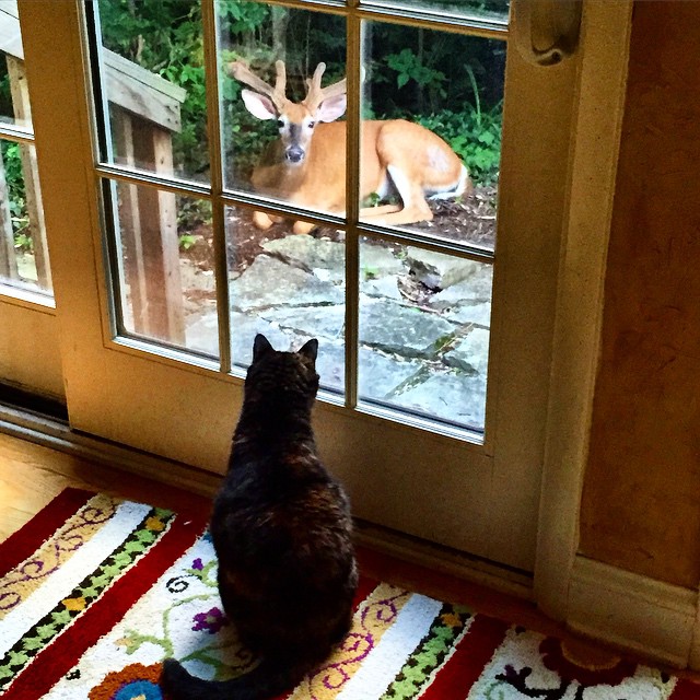 The cat also loves it, even though she will never step foot upon it. When I lived in NYC, the only beasts that tormented my cat were the squirrels. Now she has nemeses not only among the squirrels, but also the chipmunks, the possums, the coyotes, the groundhogs, the foxes, and the deer.